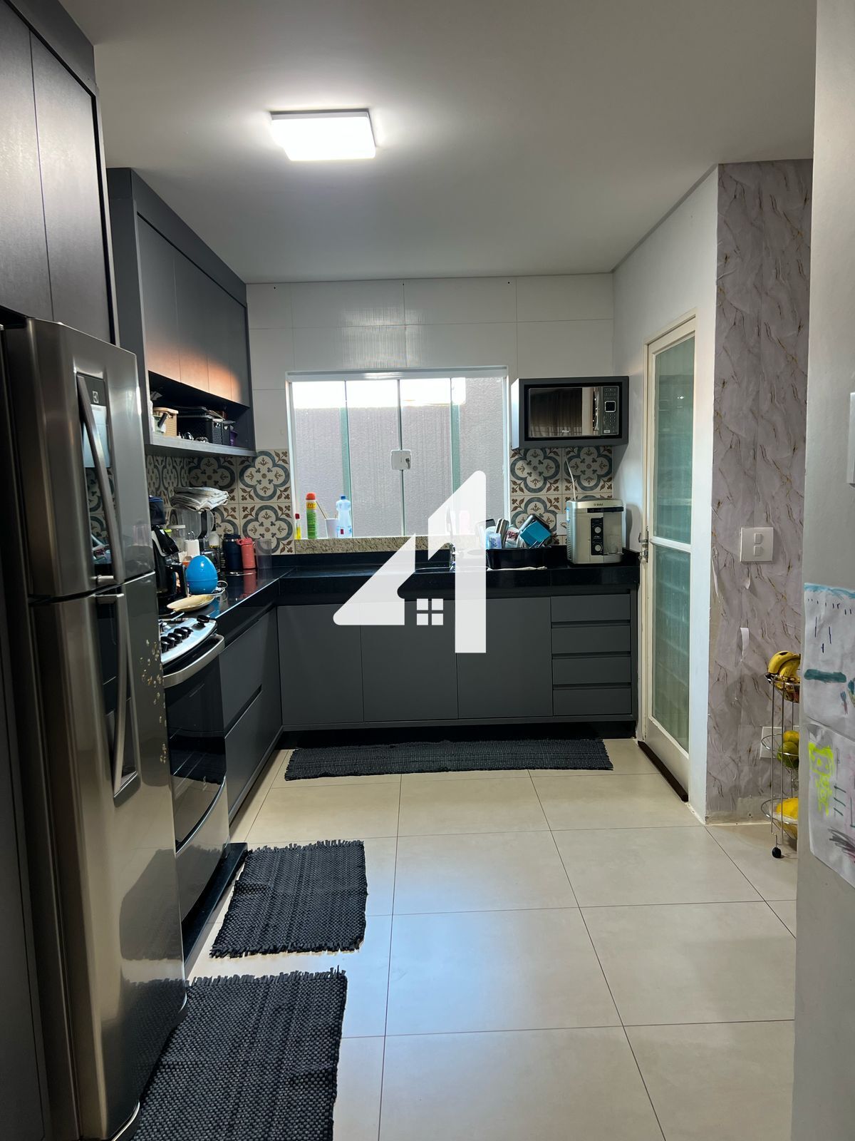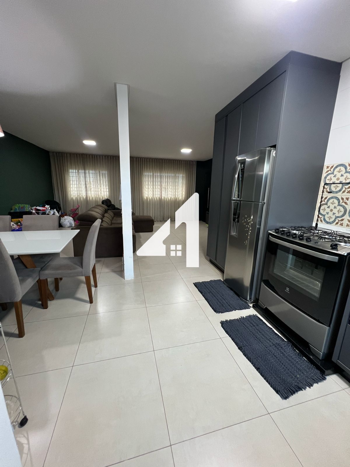 O imóvel conta com sala de estar, sala de jantar e sala de TV, cozinha, área de serviço e 2 vagas de garagem cobertas.